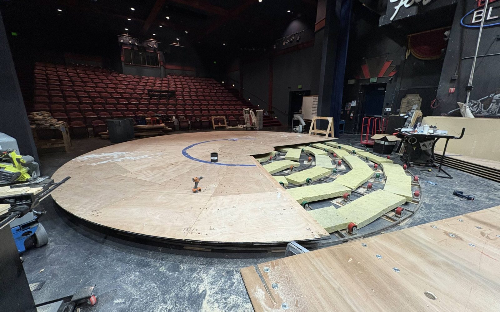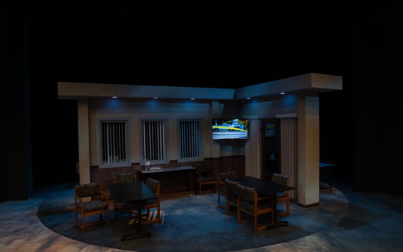 - Worked with the lighting and media technician teams to incorporate practicals and tv (powered and controlled wirelessly on the revolve)