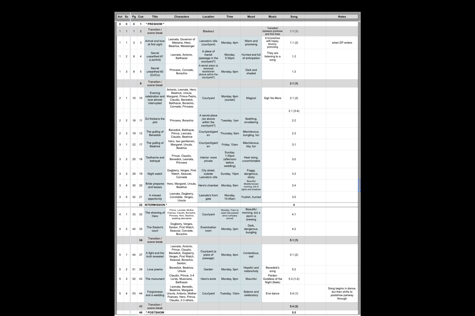- Attended all tech and dress rehearsals